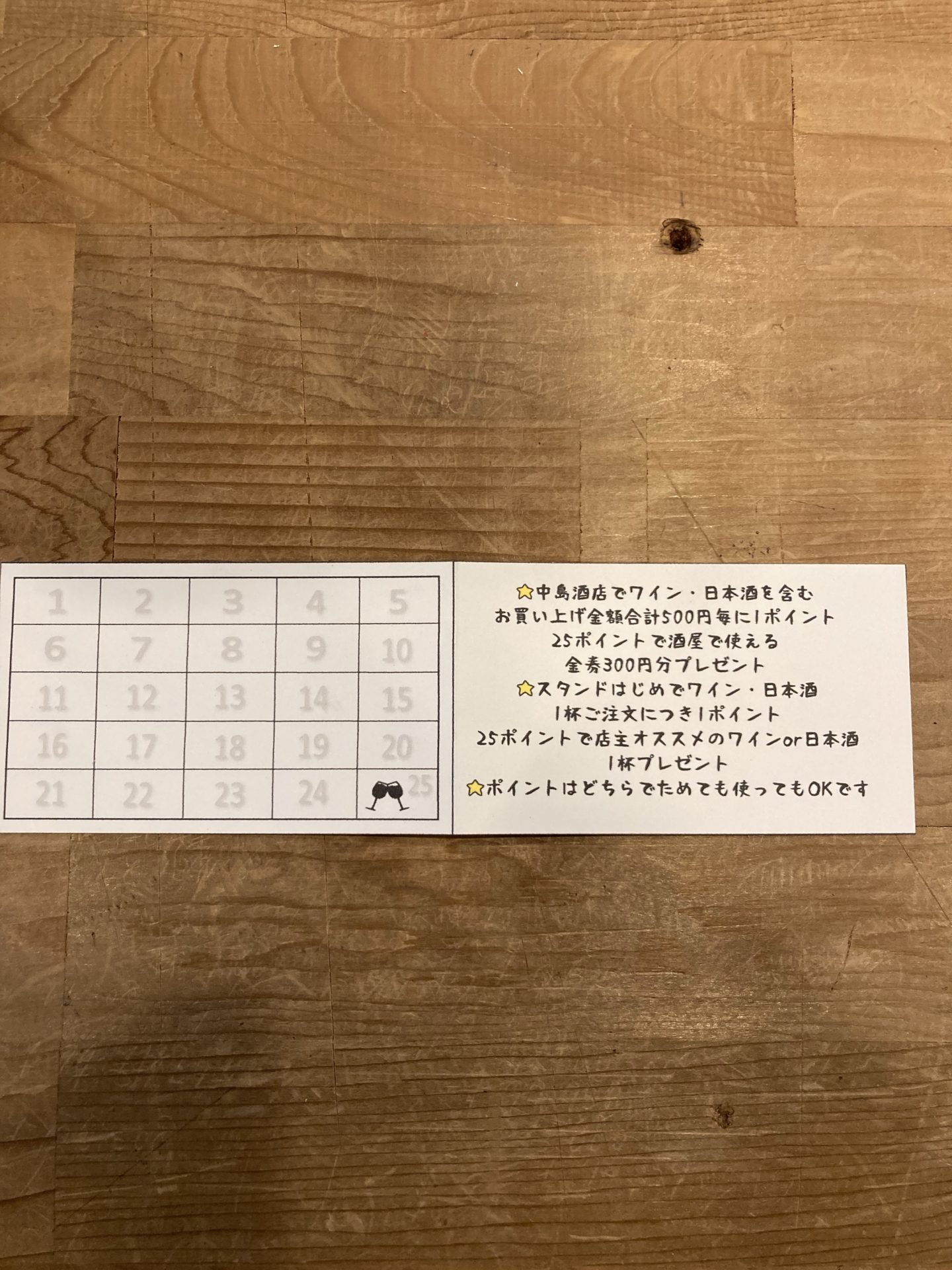 スタンプカードはじめましたっ 投稿日 2023年2月6日 著者 中島酒店 カテゴリー お知らせ 先日酒造メーカーさんから、「他の酒屋さんはわざわざご来店してくれるお客さんにスタンプカード作ってる店が多いですよ」と聞いて、自分はポイント貯めるの大好きなのに今までやってなかったな、と気づきパソコンで💻カタカタやってもらい消しゴムでハンコを作ってもらって完成しました🎊 とてもシンプルですが非常に気に入っています❤️ 併設店のスタンドはじめでも使っていただけますので両方でどんどんポイントを貯めてくださいね☺️ よろしくお願いします!
